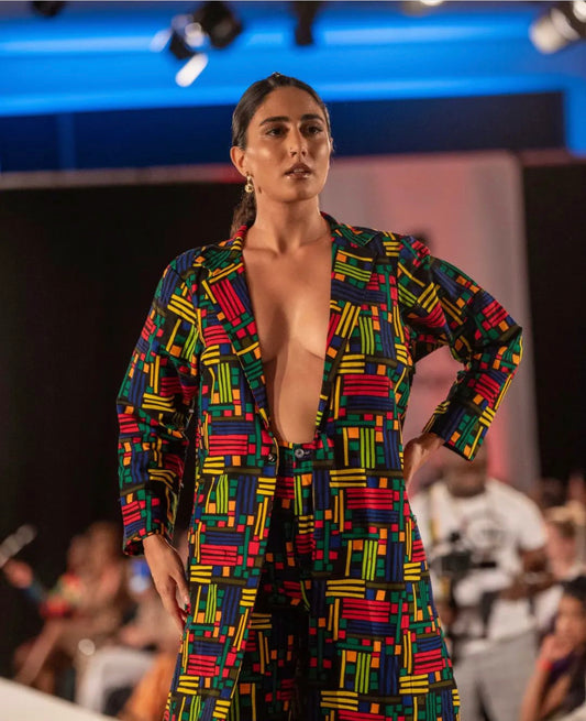 KAMSI AFRICAN FLARED HIGH-LOW PRINT SKIRT