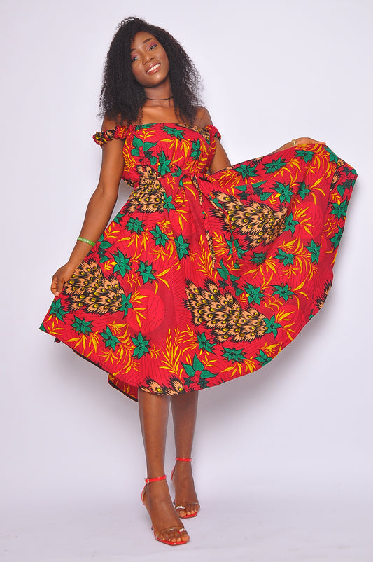 LAYO OFF SHOULDER AFRICAN PRINT DRESS