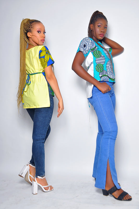 CHINENYE AFRICAN PRINT BLUE/ YELLOW TOP