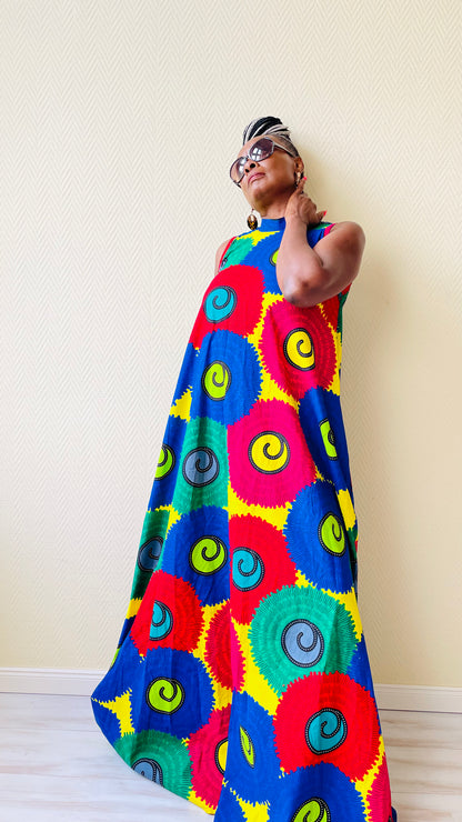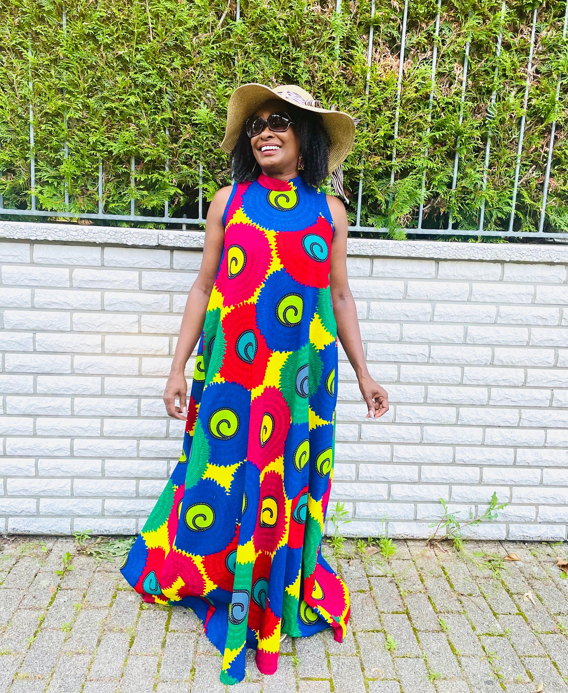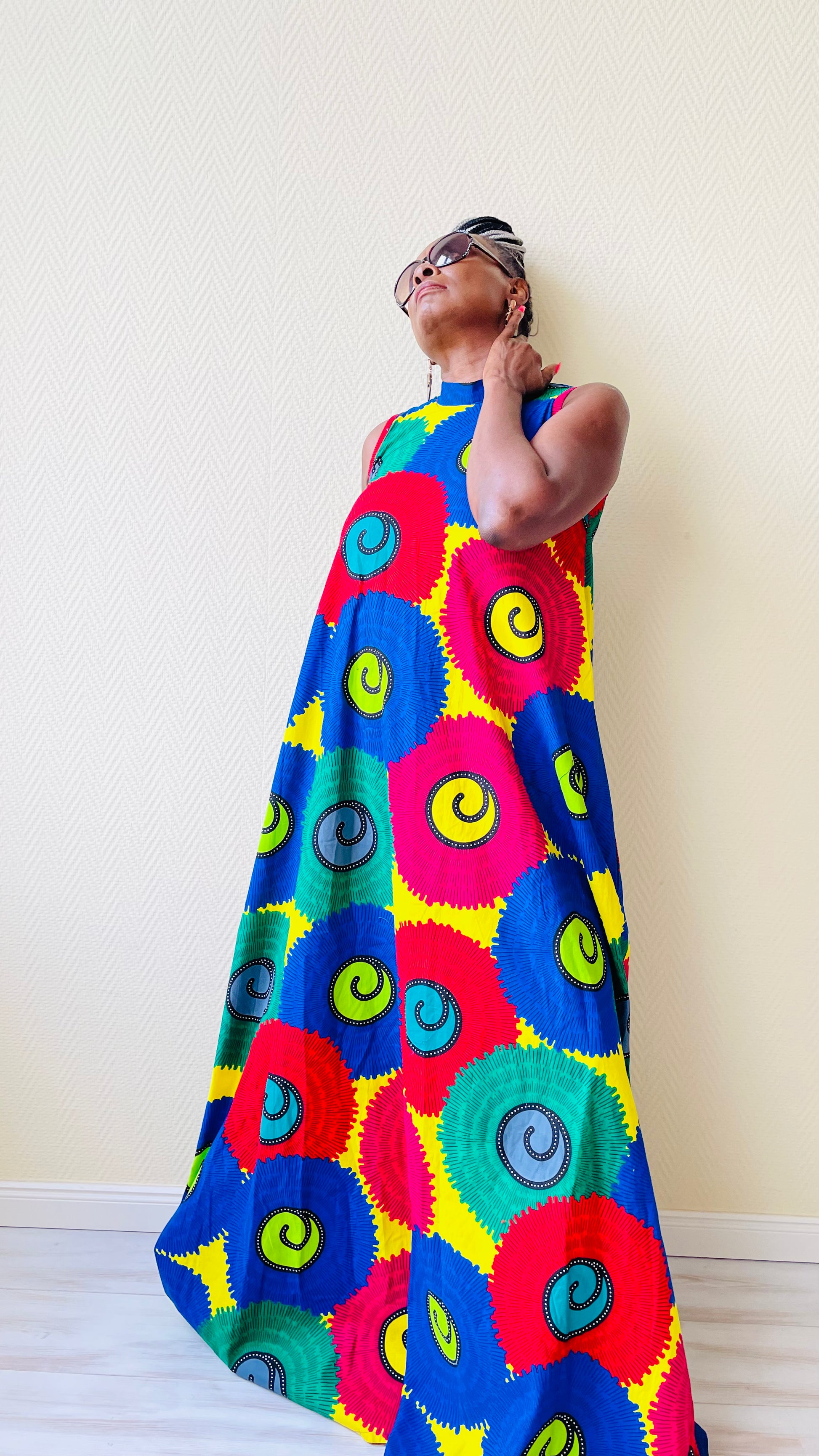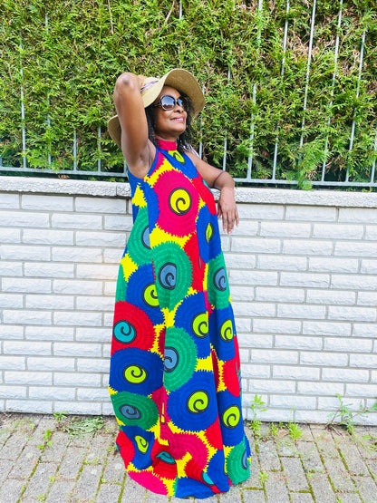 Dance the night away in this comfortable yet beautiful red, blue and green maxi dress. So comfortable and figure-flattering you’d be forgiven for wearing this dress over and over again.