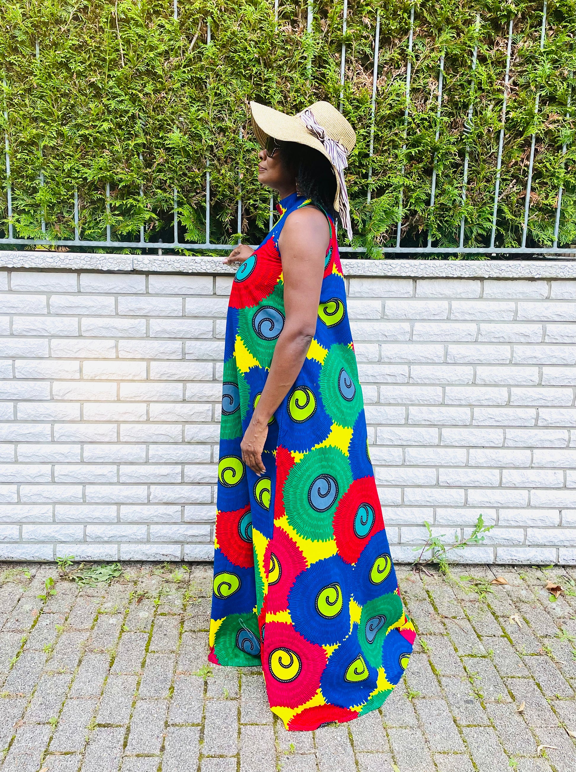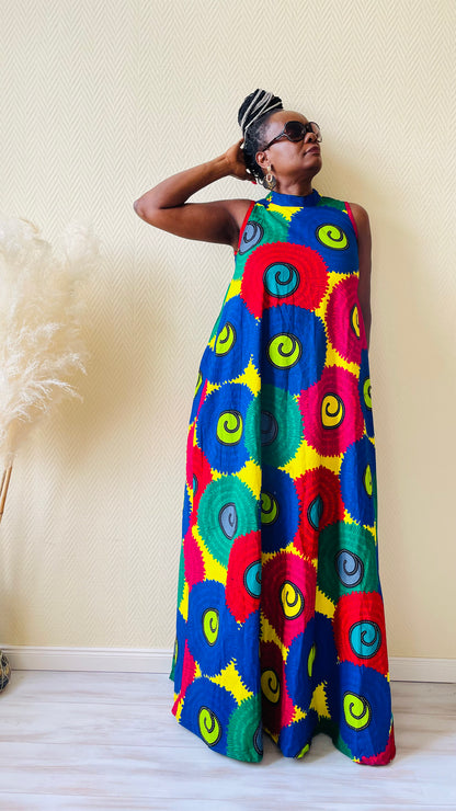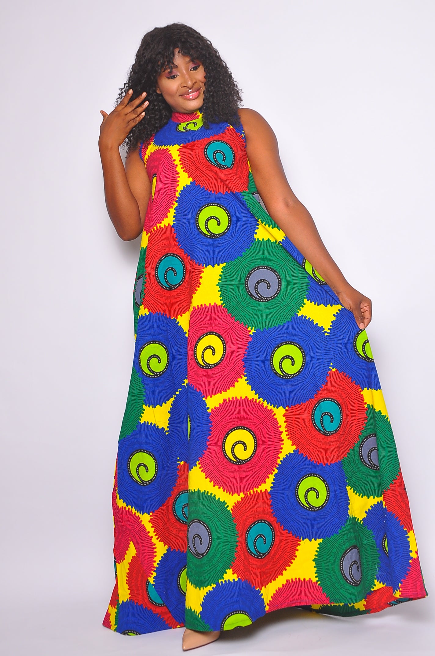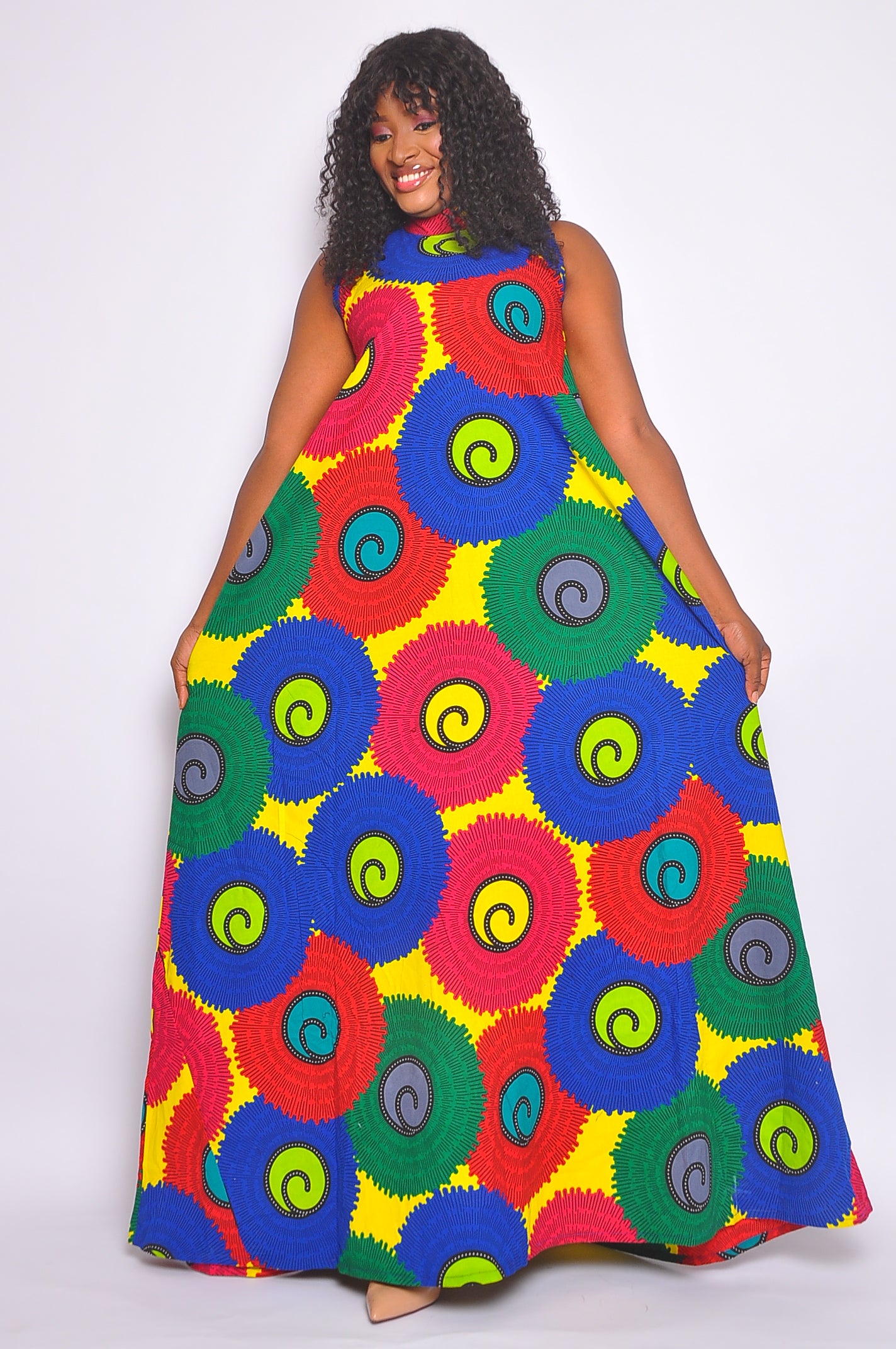 Dance the night away in this comfortable yet beautiful red, blue and green maxi dress. So comfortable and figure-flattering you’d be forgiven for wearing this dress over and over again.