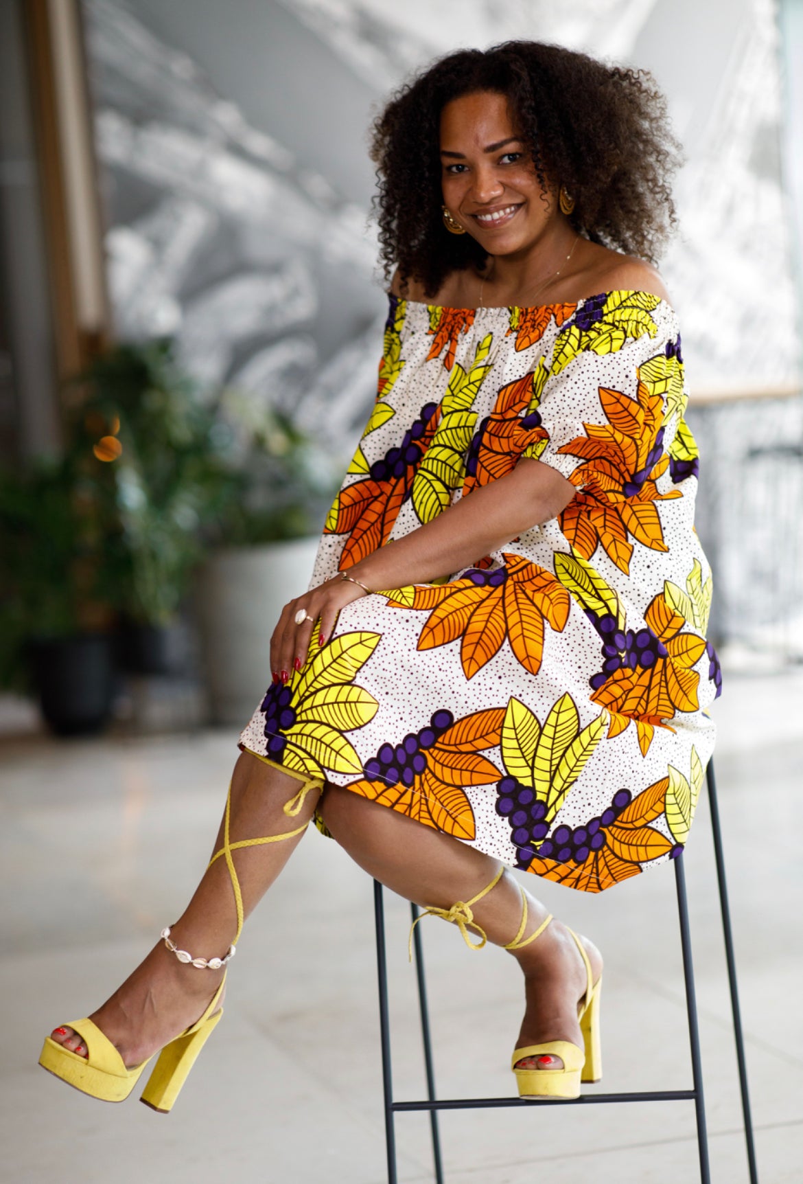FLOWER OFF-SHOULDER AFRICAN PRINT SUMMER SHIFT DRESS