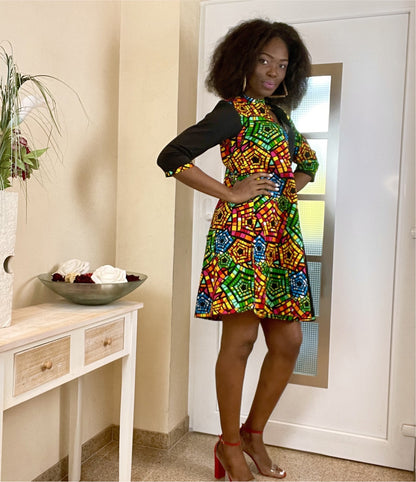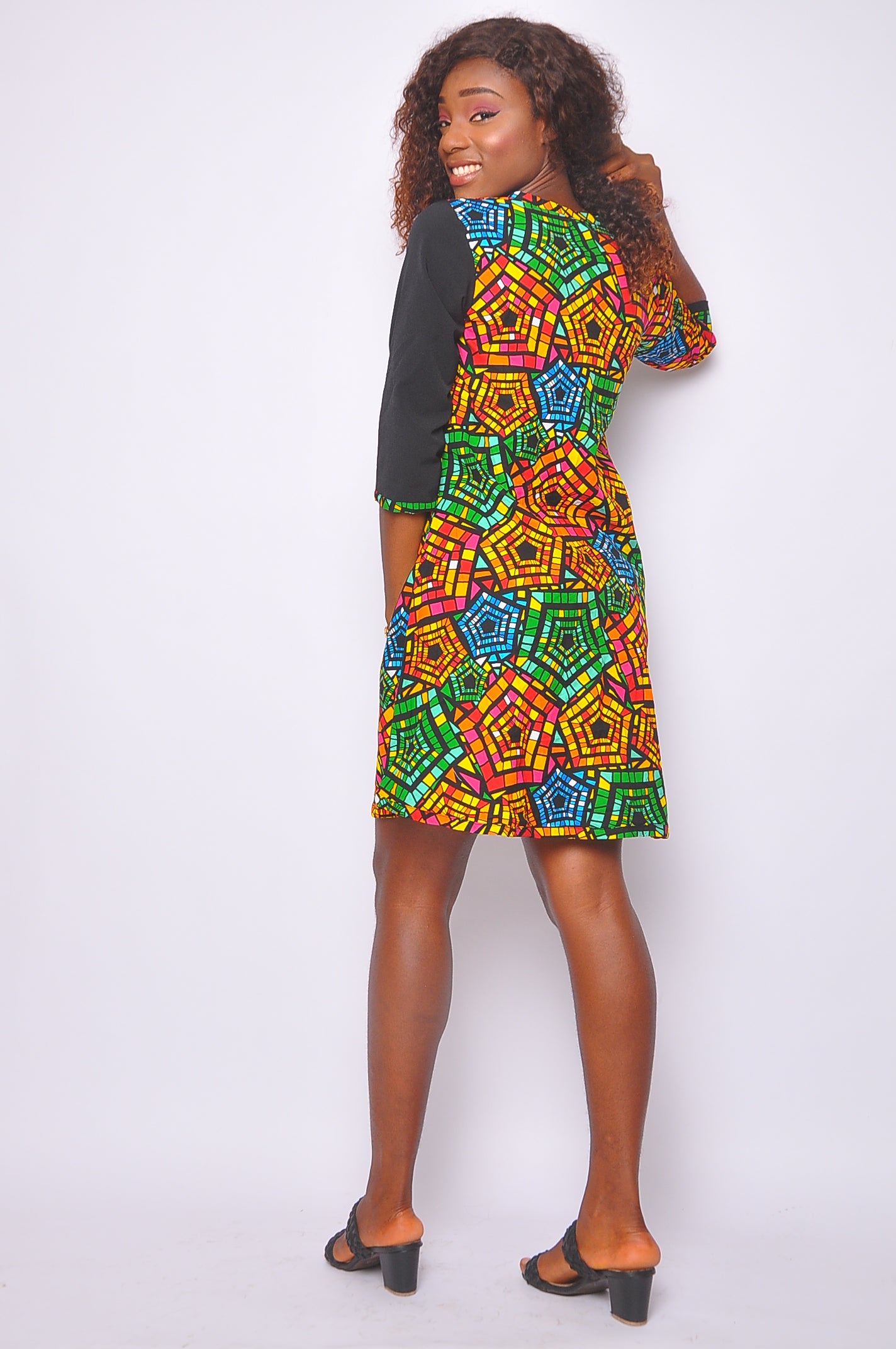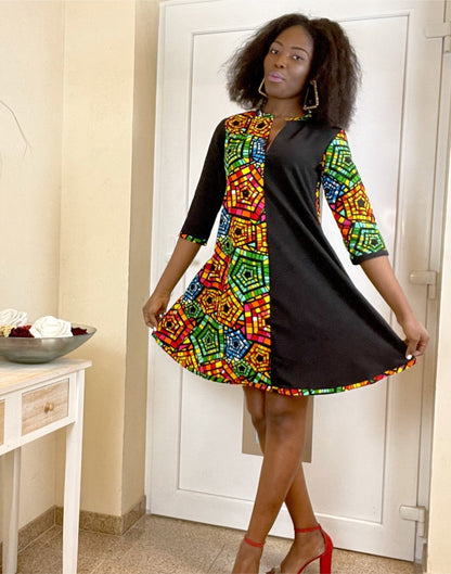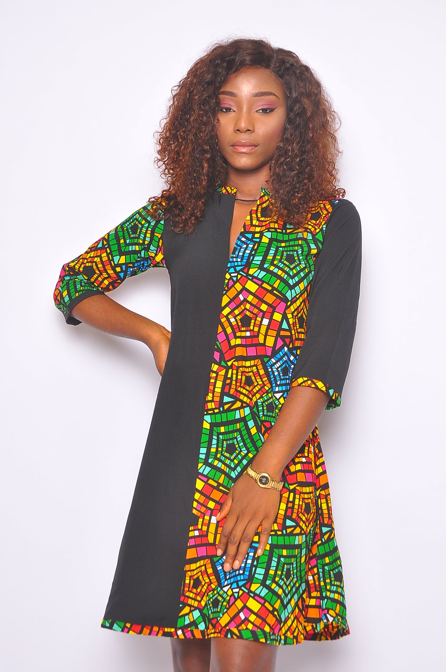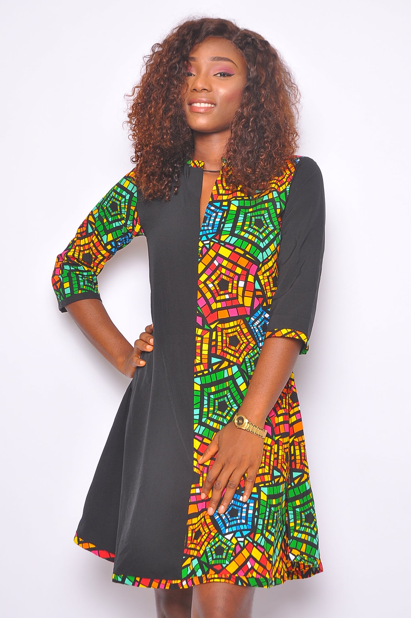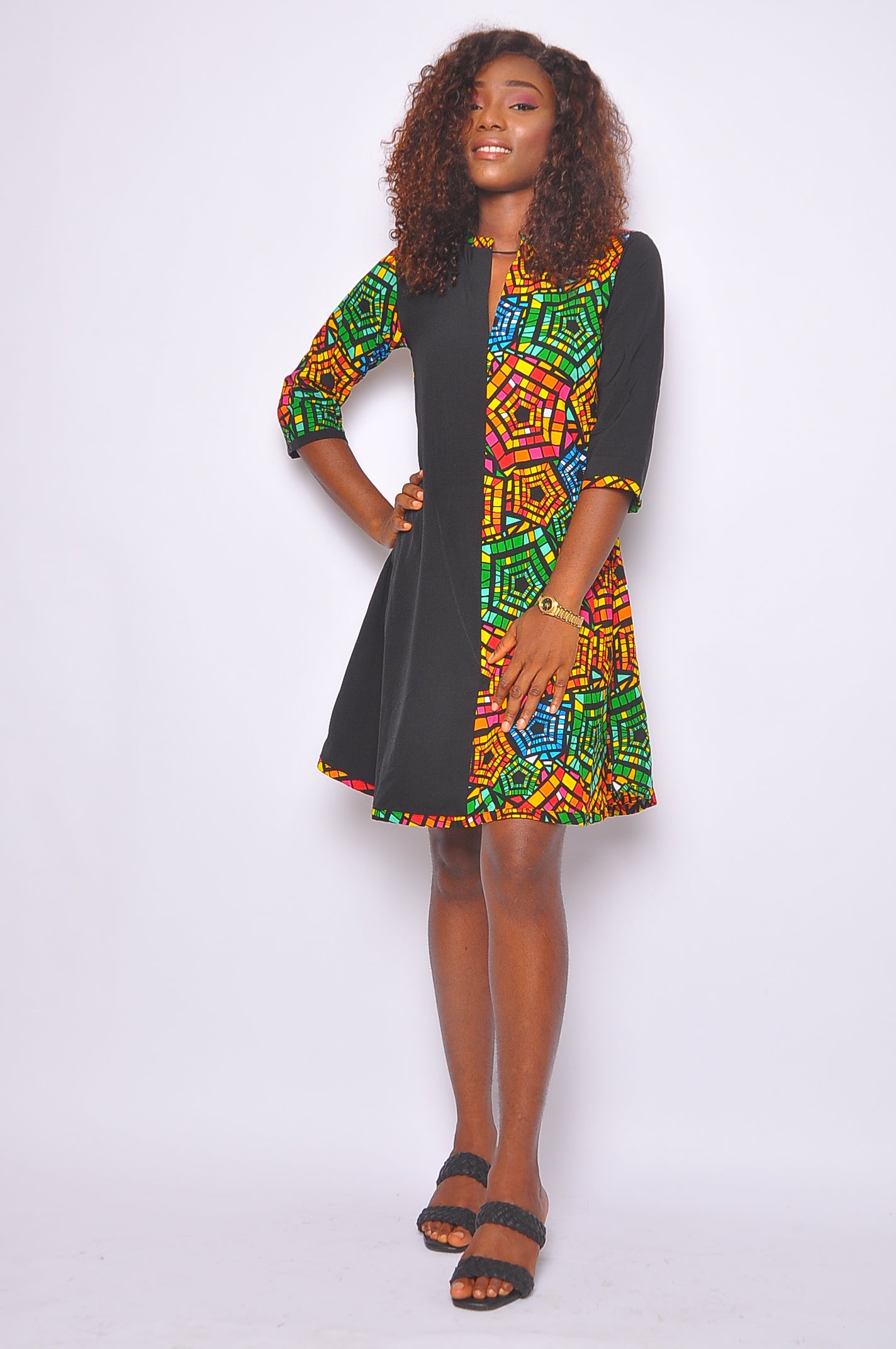 ENIOLA AFRICAN TWO-TONE PRINT DRESS