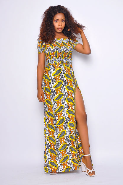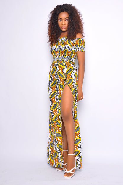 LAYO OFF SHOULDER AFRICAN PRINT DRESS